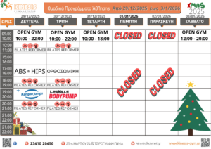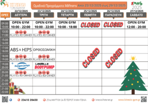 Το εορταστικό πρόγραμμα λειτουργίας του KINESIS GYM είναι….