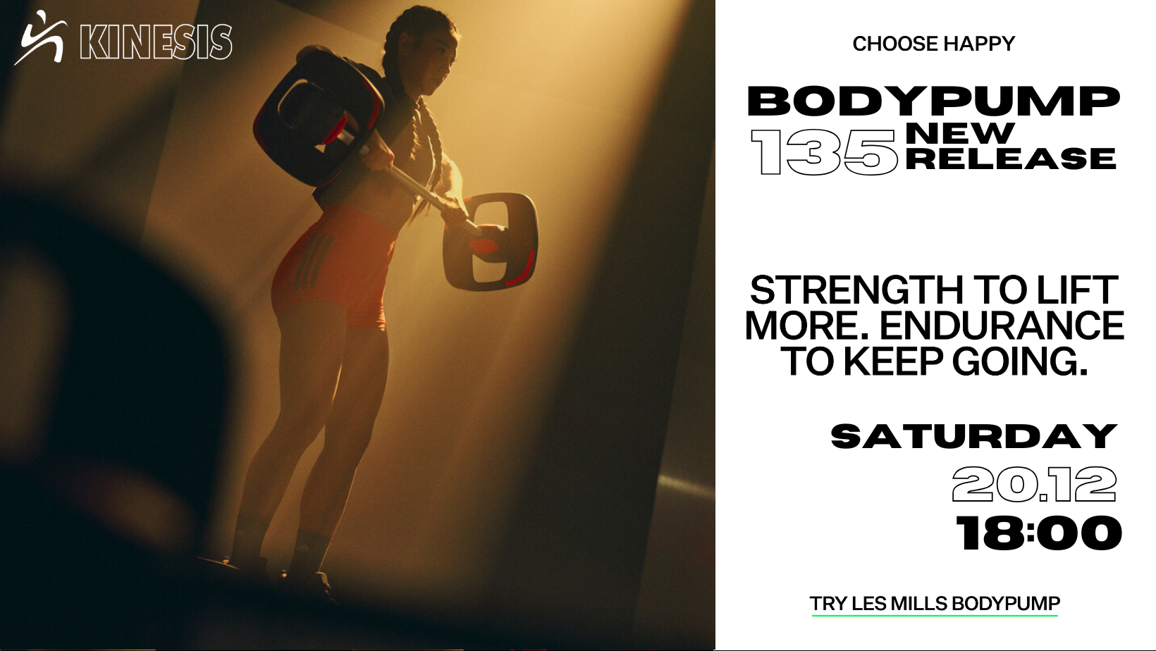 Fitness Training Hall 25ης Μαρτίου 24, ΚιλκίςΠΑΡΟΥΣΙΑΣΗ ΝΕΟΥ ΠΡΟΓΡΑΜΜΑΤΟΣ BODYPUMP 135 (NEW RELEASE) Σάββατο 20 Δεκεμβρίου 2025 18:00 KINESIS GYM στην αίθουσα Fitness Training Hall Το γυμναστήριο KINESIS GYM στην προσπάθεια του για διαρκή βελτίωση και αναβάθμιση των προϊόντων παροχής γυμναστηρίου και σε συνεργασίας με την […]